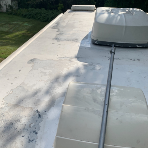 After much review I decided to purchase RV Roof Coating for a metal roof which has seams every 4 feet. First do not use this coating without first applying the primer of same brand. Primer provides good sticky surface for primer.I applied two coats allowing good drying time in between coats. Since finishing project two heavy rain storms have hit my area. Proud to report no leaks or problems. I highly recommend this product for sealing a leaking roof of prescribed material.